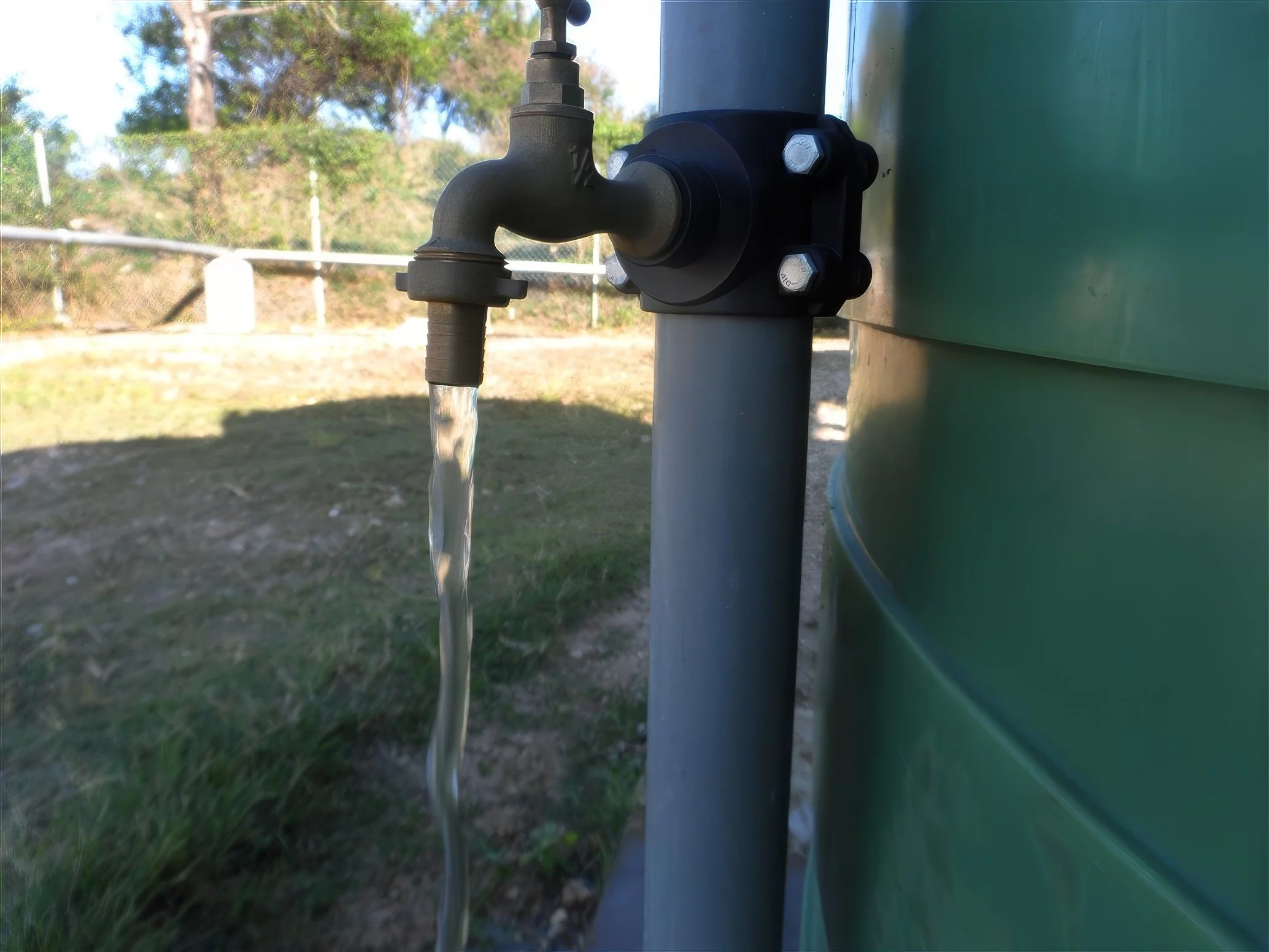 Robinet d'échantillonnage d'eau traité de la STEP Mandena avec un débit de 300m3/jour.